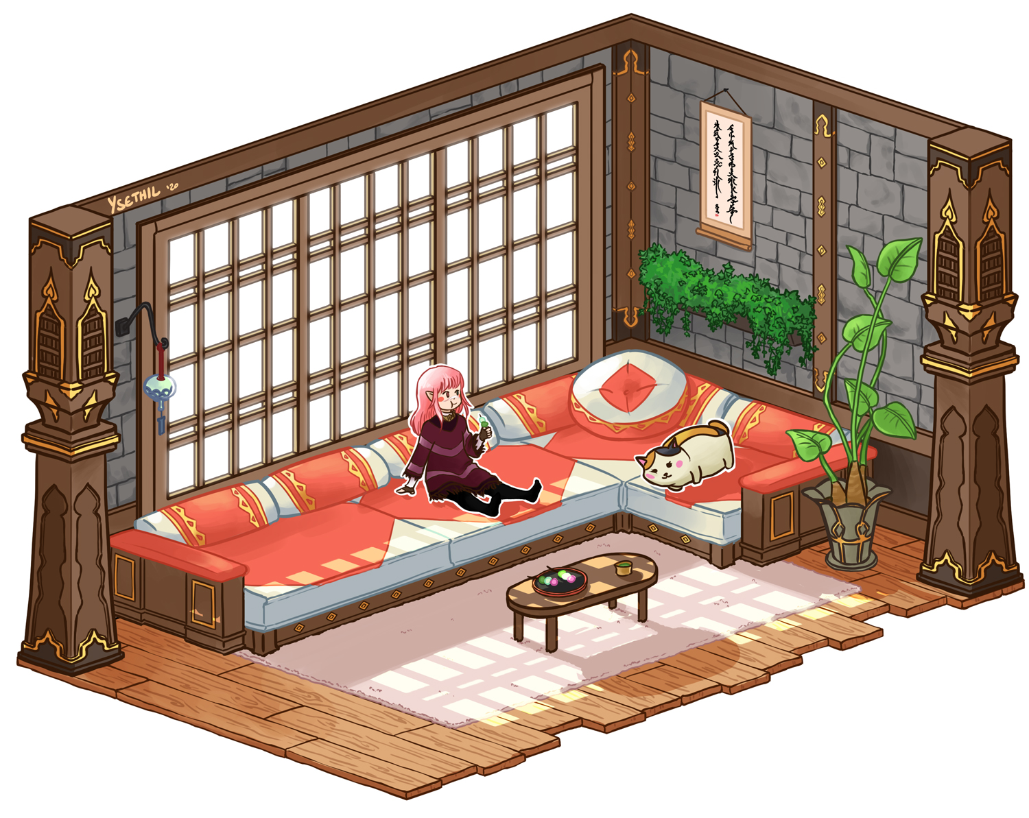 Un décor en vue isométrique, inspiration Final Fantasy XIV
