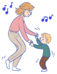 Double page n°6 : bébé s'amuse en musique avec un parent