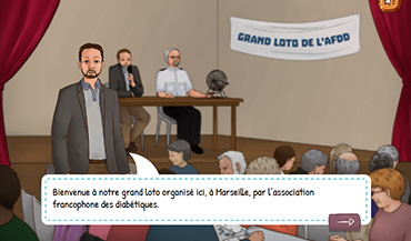 Il s'agit d'un serious game à destination des patients atteints de diabète de type 2, de type point and click, ayant pour but de tester et renforcer leurs connaissances sur les différents aspects de la maladie.