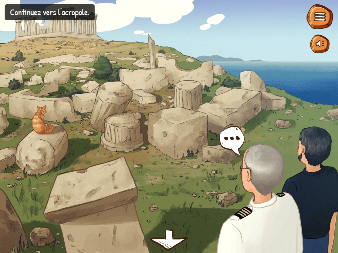 J'ai été chargée de réaliser un teaser en motion design (à l'aide de visuels non définitifs) puis les décors et personnages du jeu.