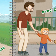 Pour certaines illustrations, des variantes sont prévues. Car vous êtes peut-être une maman ou un papa solo et vous n'avez pas forcément de chat !