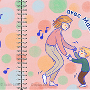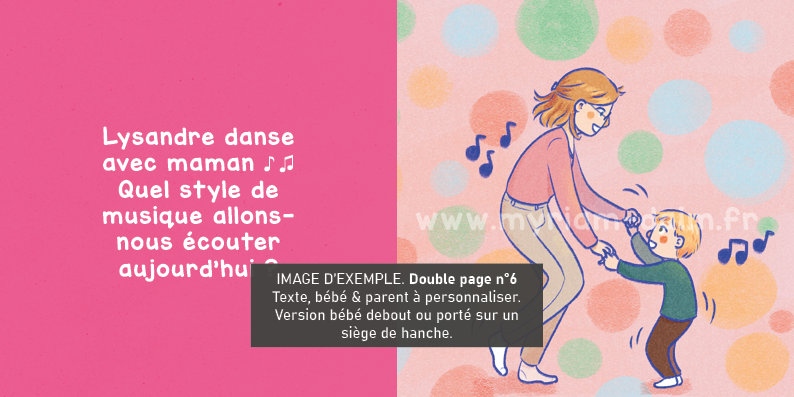 Double page n°6 : bébé s'amuse en musique avec un parent